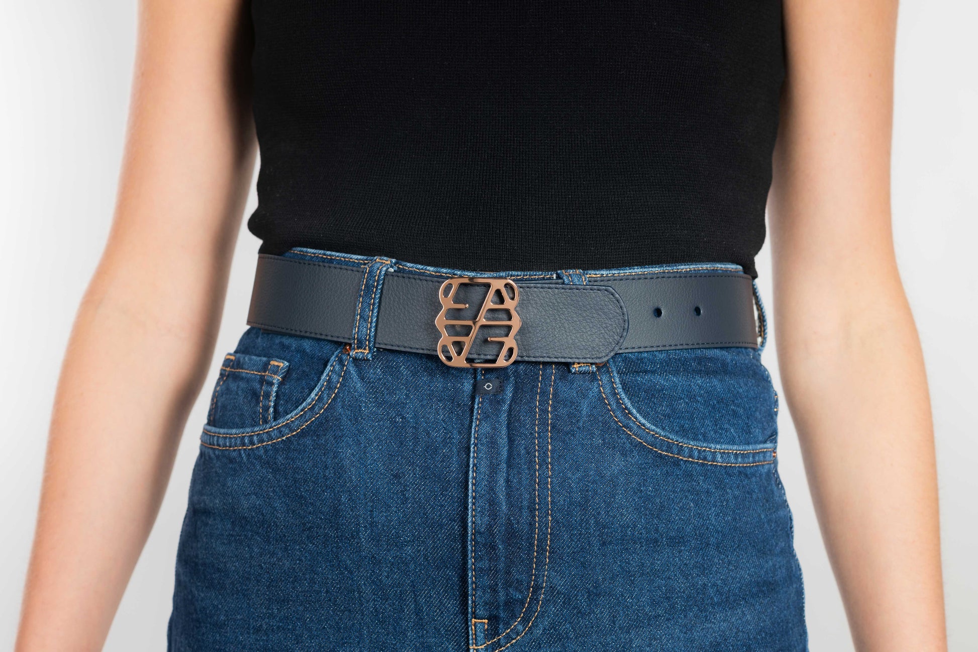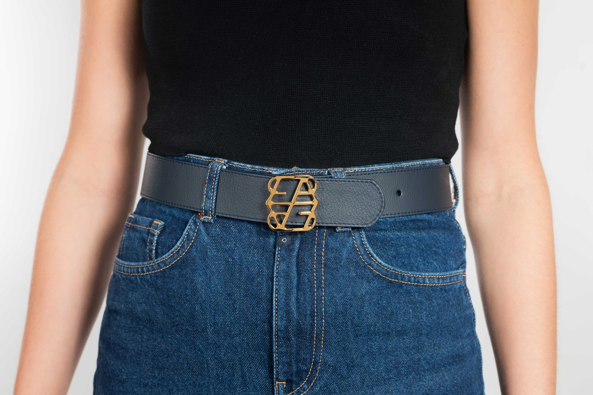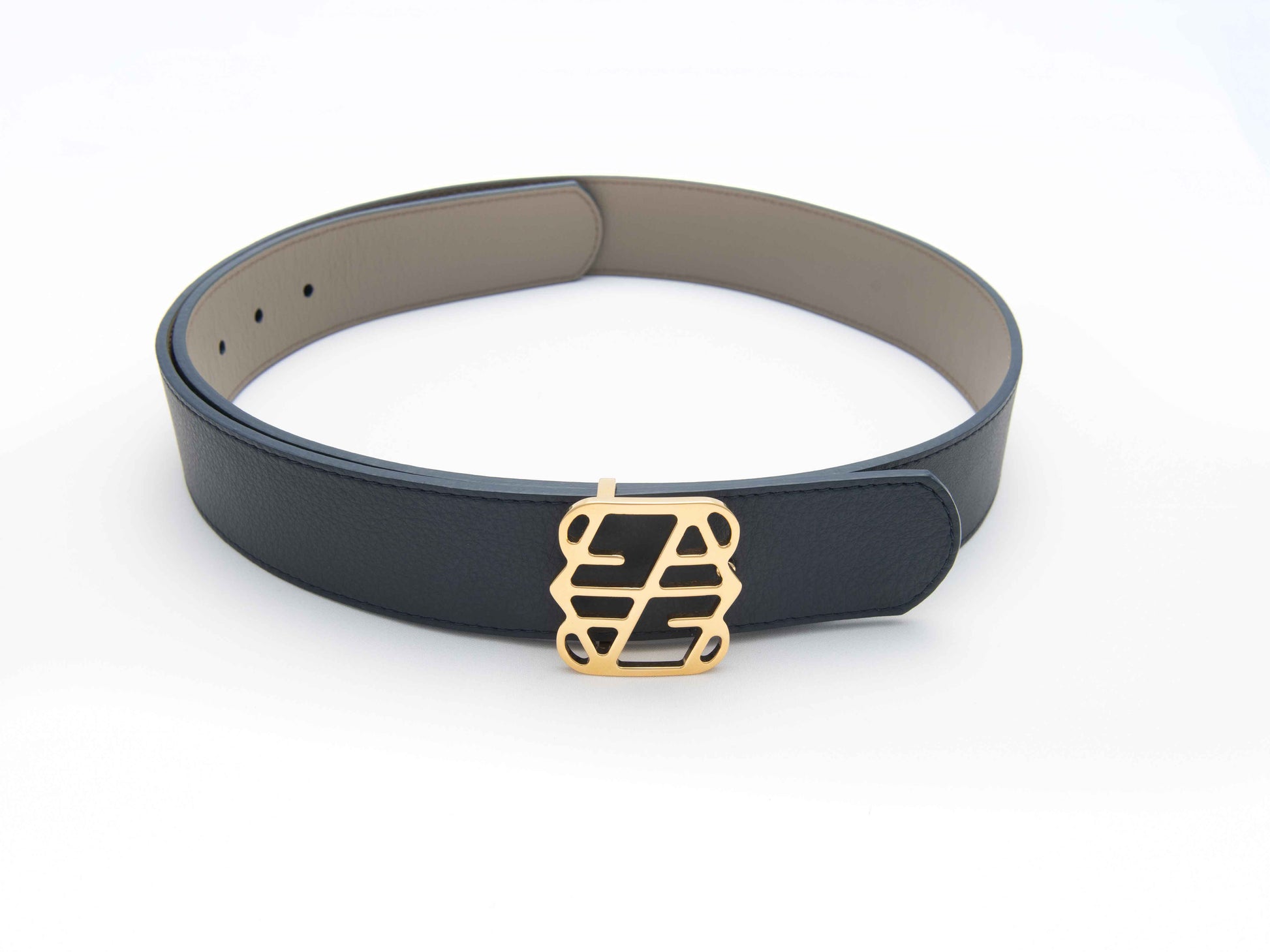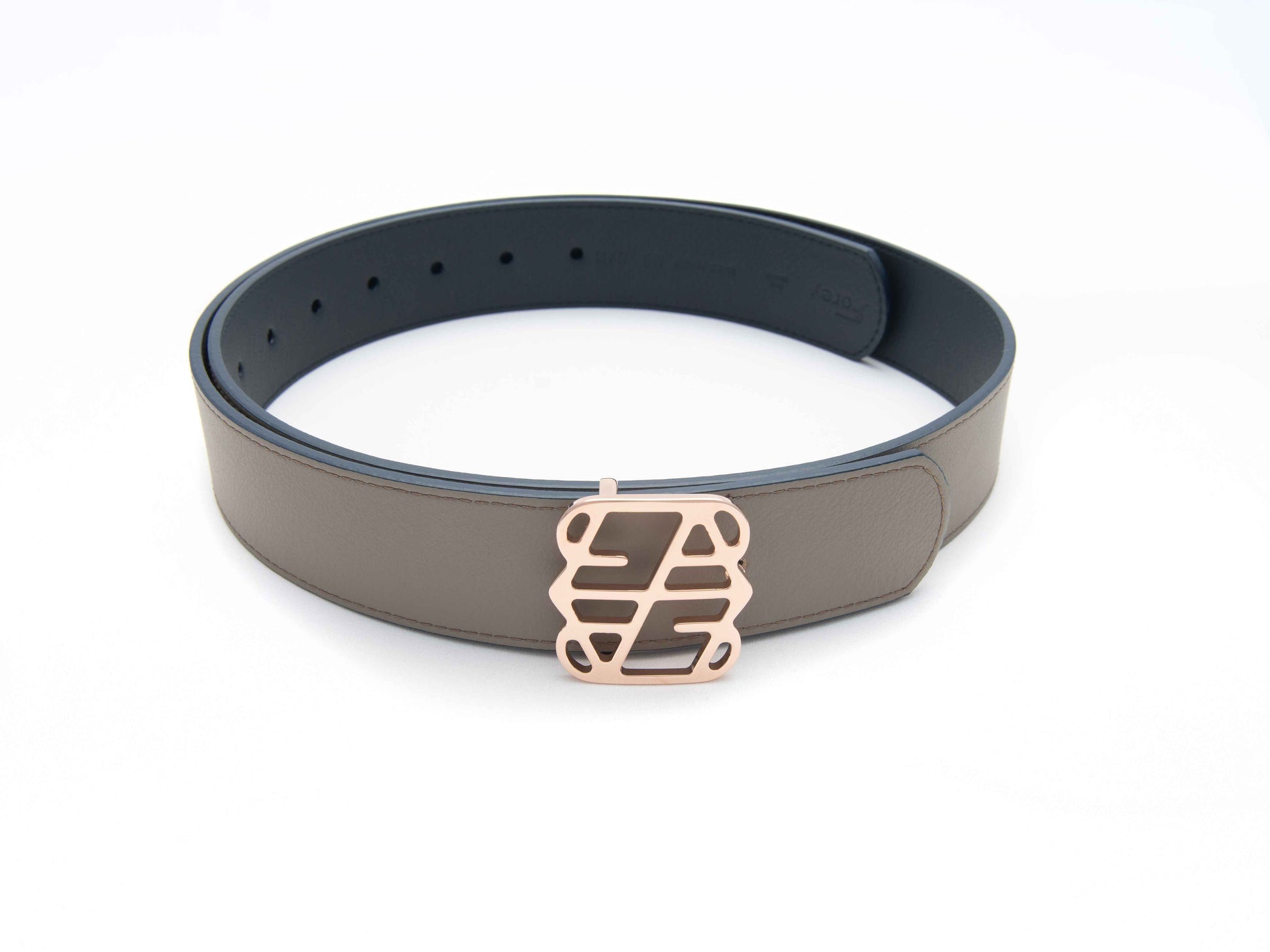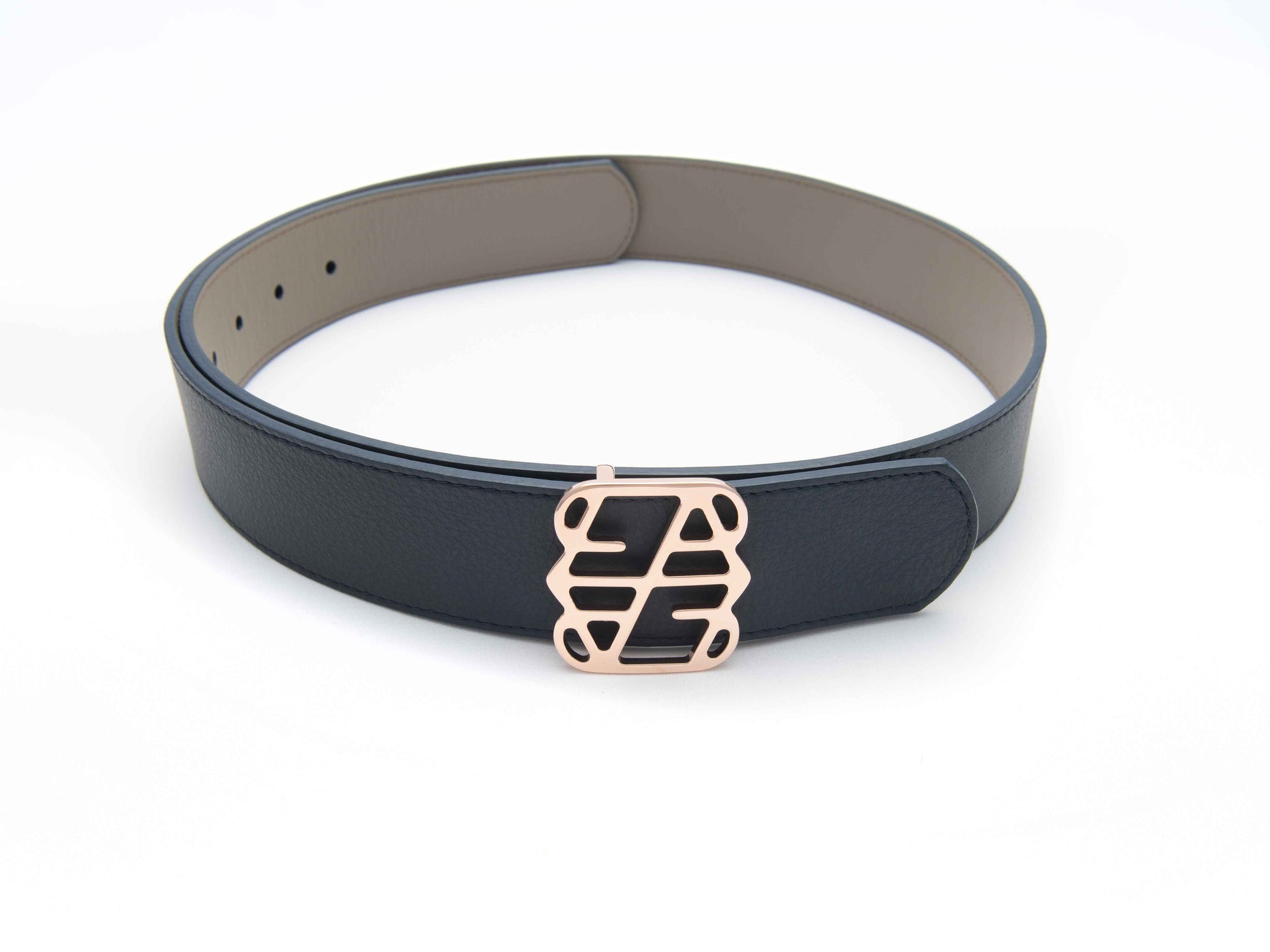 Ceinture réversible en cuir pleine fleur de la plus haute qualité avec boucle en laiton massif plaquée or, nickel ou or rose.