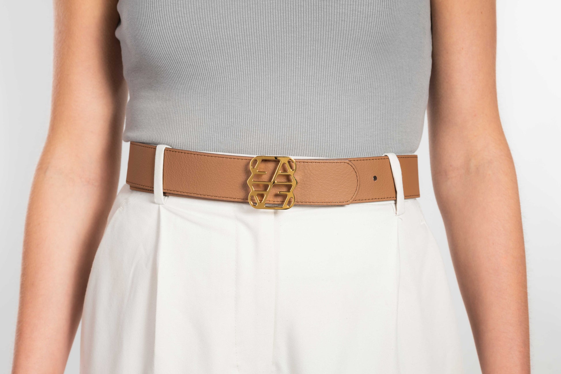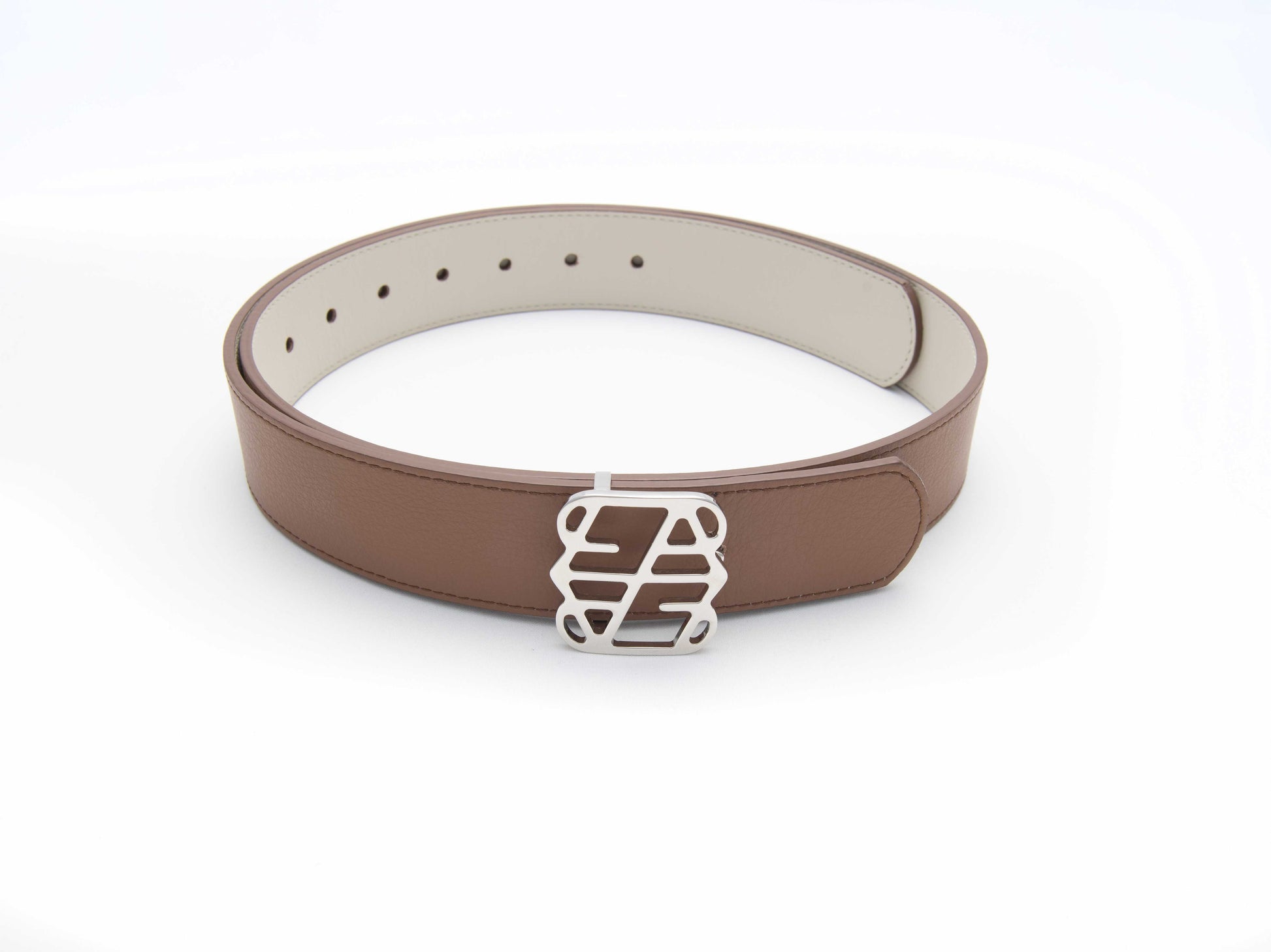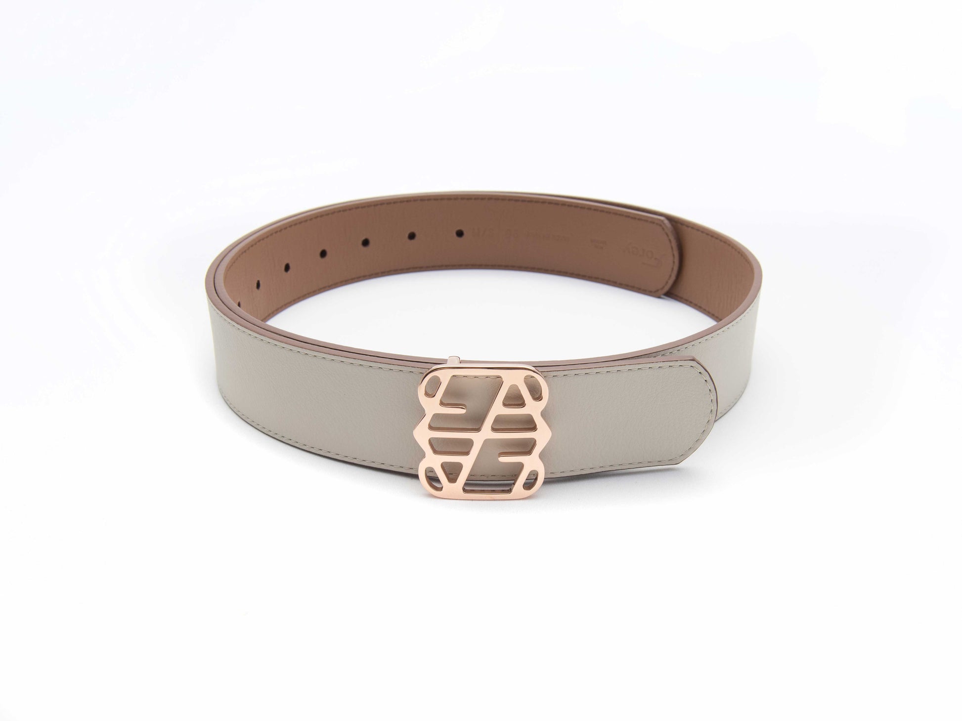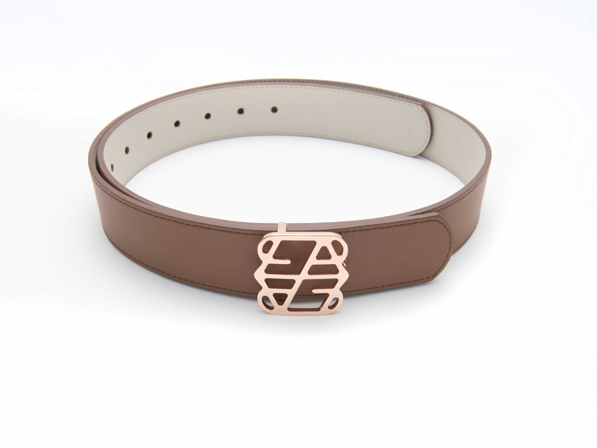 Reversible riem van de hoogste kwaliteit volnerf leer met massief koperen gesp, verguld in goud, nikkel of roségoud.